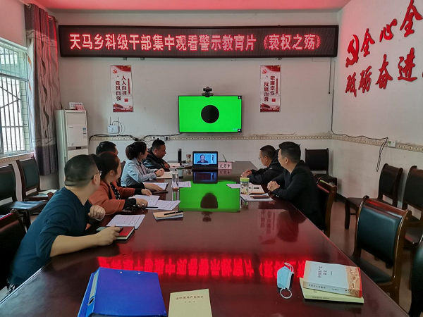 近日,天马乡组织科级干部集中观看警示教育片《亵权之殇》。