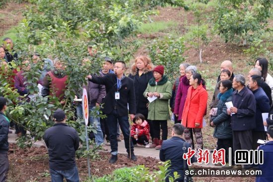 安岳县天马乡画青村“微课堂”——柠檬春管技术讲解。(资阳市安岳县新闻中心供图)