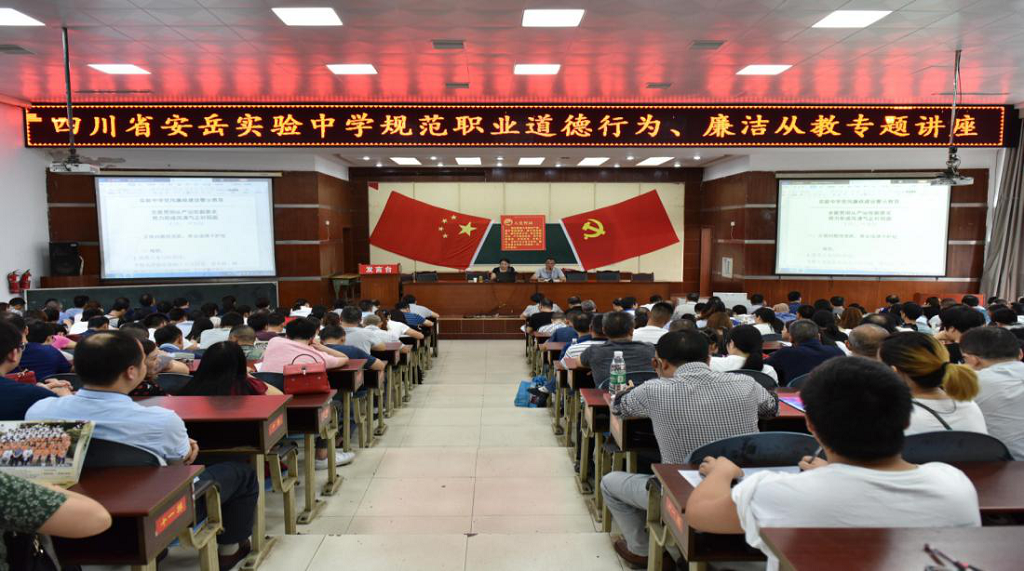 为深入推进落实全面从严治党的各项要求,切实加强党风廉政建设和反腐败工作,营造风清气正的教育环境,6月28日,安岳县纪委监委派驻安岳县教育和体育局纪检监察组组长严知好同志到安岳实验中学举办了题为《全面贯彻从严治党新要求,努力形成风清气正好局面》的党风廉政建设警示教育专题讲座。学校全体教职员工参加了此次学习。