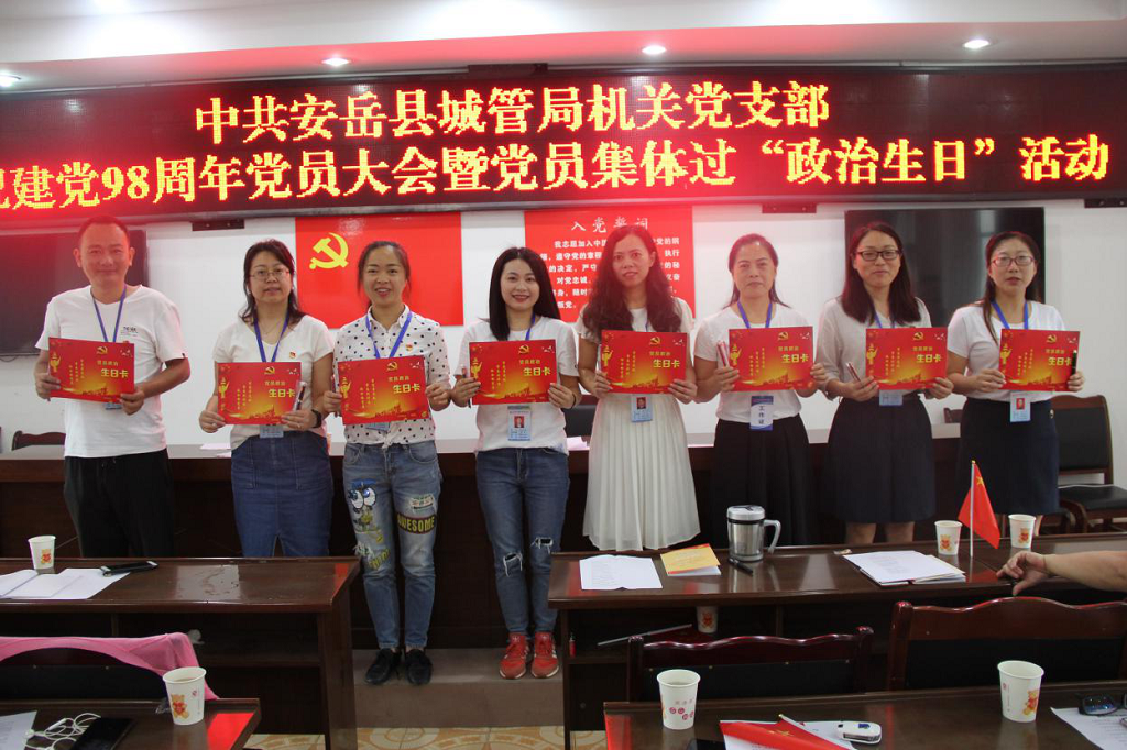 为加强党风廉政建设,强化廉政教育,创新活动方式,增进基层党组织的凝聚力和向心力。近日,县综合行政执法局机关党支部组织全体党员,在局三楼会议室举办庆祝建党98周年党员大会暨党员集体过“政治生日”活动,向党的生日献礼。