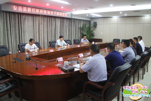 2019年7月19日,安岳县委书记彭洪主持召开新任职科级领导干部谈话会,与他们沟通思想,帮助他们提高认识,明确要求,尽快进入角色,适应岗位要求,开创工作新局面。