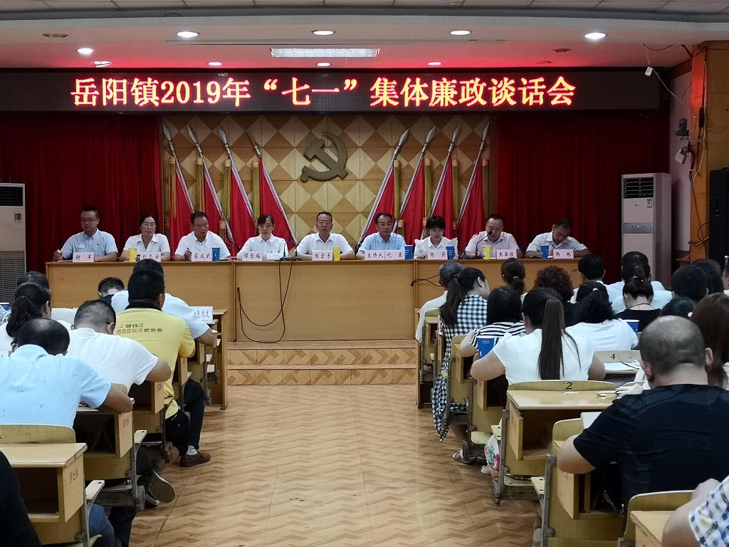近日,岳阳镇召开2019年“七一”廉政党课暨集中廉政谈话会。镇党委书记讲廉政党课,镇纪委书记开展党员干部集中廉政谈话。镇全体班子成员,各村(社区)实职干部,镇直各单位党组织负责人,机关全体干部,全体新发展党员参加会议。