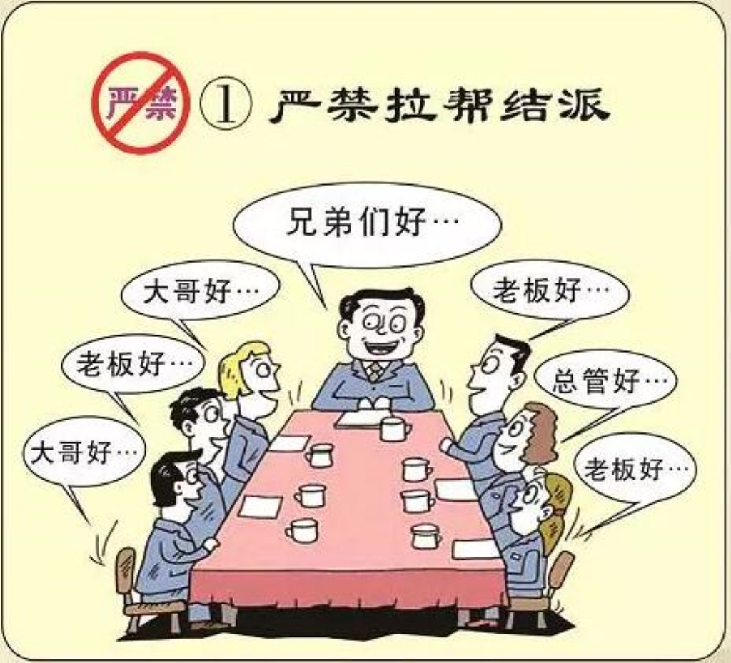 1.严禁拉帮结派,对搞团团伙伙、结党营私的,一律给予纪律处分。