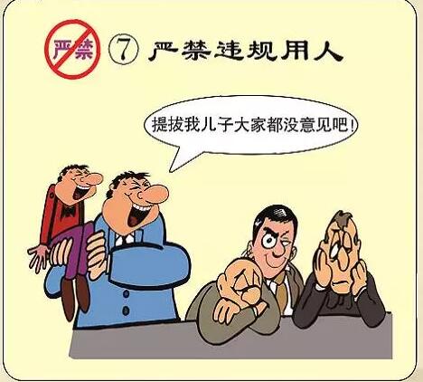 7.严禁违规用人,对突击提拔调整干部、超职数配备干部和违反规定程序选拔任用干部的,一律宣布无效,并视情节对相关人员给予纪律处分。