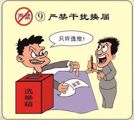 9.严禁干扰换届,对造谣、诬告他人或者妨害他人自由行使选举权的,一律严厉查处,涉嫌违法犯罪的移送司法机关处理。