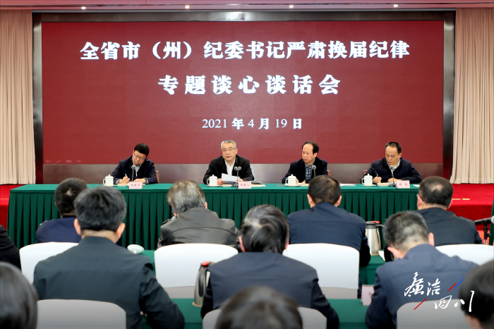 4月19日,省纪委监委召开全省市(州)纪委书记严肃换届纪律专题谈心谈话会,省委常委、省纪委书记、省监委主任王雁飞出席会议并讲话,强调要认真贯彻落实党中央、中央纪委和省委关于严肃换届纪律的部署要求,切实提高政治站位,从严从实抓好换届纪律监督,确保换届风清气正。