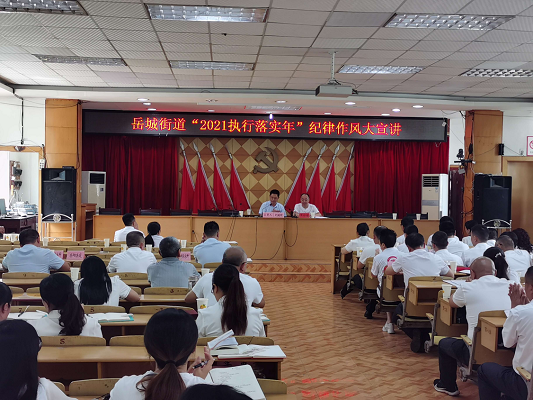 近日,岳城街道开展“2021执行落实年”纪律作风大宣讲,全体在家班子成员、机关干部、村(社区)书记、副书记等参加会议。