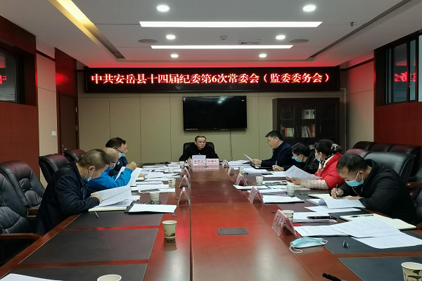 近日,安岳县纪委组织召开第6次常委会(监委委务会),传达学习中国共产党资阳市第五次代表大会精神,研究贯彻落实意见。