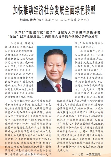 《人民日报》3月8日刊发全国人大代表、省委书记、省人大常委会主任彭清华署名文章《加快推动经济社会发展全面绿色转型》,全文如下: