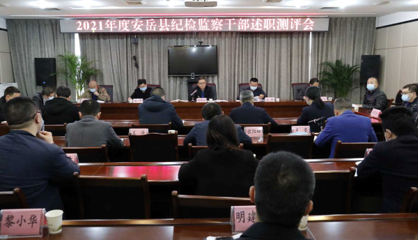4月6日,安岳县纪委监委组织召开2021年度纪检监察干部述职测评会,听取部分乡镇纪委书记、派驻(出)纪检监察组织负责人、委机关室(部、中心)及非领导干部代表的年度述职,并进行现场评议。县委常委、县纪委书记、县监委主任金家文主持会议并讲话。