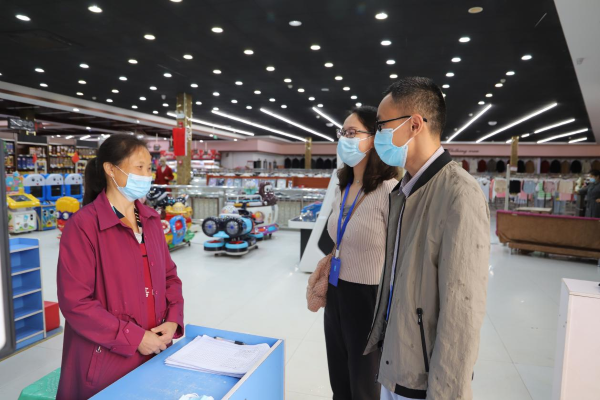 县纪委监委干部在乡镇超市对商户宣传防疫政策。