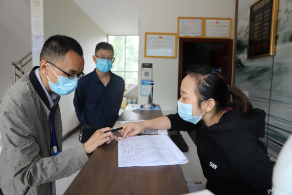 县纪委监委干部到乡镇旅馆检查疫情防控政策落实情况。
