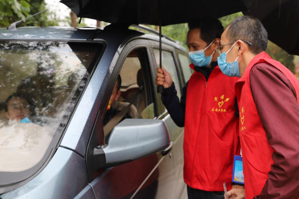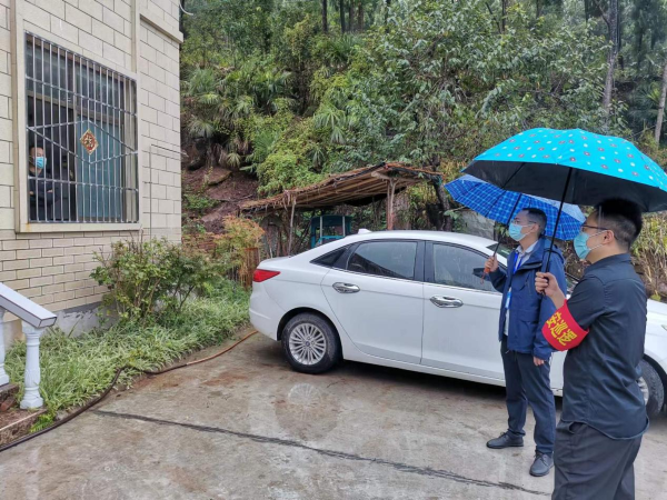 县纪委监委干部在千佛乡上游村卡口对来往车辆进行检查。