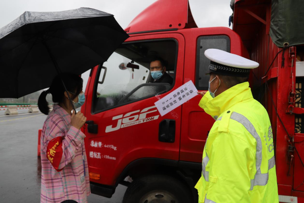 县纪委监委干部在高速路口协助交警对返安车辆进行检查。