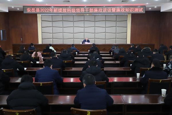 为督促干部在党风廉政建设方面带好头、起好步,在新的岗位上不掉队、走正路,当好全面建设社会主义现代化安岳的骨干中坚,12月28日上午,安岳县纪委监委组织召开2022年新提拔科级领导干部廉政谈话暨廉政知识测试,县委常委、县纪委书记、县监委主任金家文作集体廉政谈话。