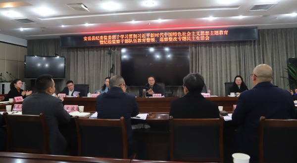 2024年1月19日,安岳县纪委监委班子组织召开学习贯彻习近平新时代中国特色社会主义思想主题教育暨纪检监察干部队伍教育整顿、巡察整改专题民主生活会。市纪委监委教育整顿县(区)第二督导组组长黄贵明、市委第四巡察组组长杨小丽,市纪委监委教育整顿指导组、县委指导组领导到会指导。县委常委、县纪委书记、县监委主任金家文主持会议并讲话。