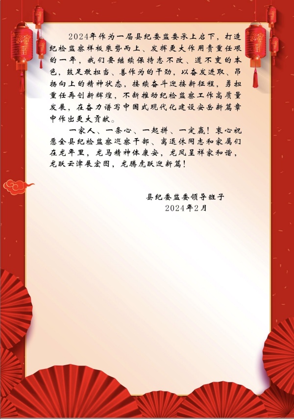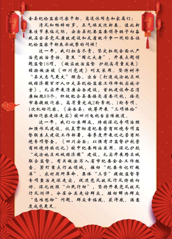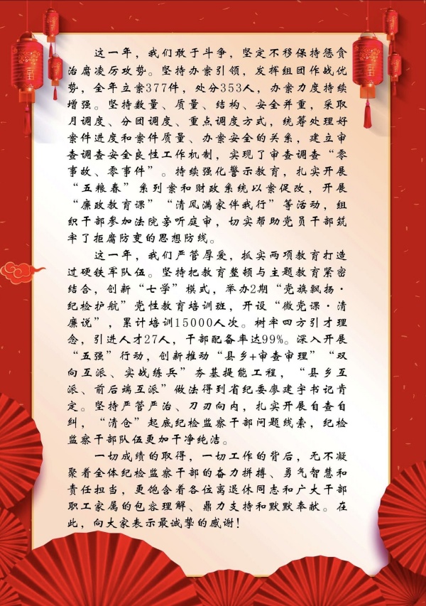 致全县纪检监察巡察干部、离退休同志和家属们的一封感谢信