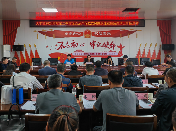 近日,大平镇召开2024年第二季度全面从严治党、党风廉政建设暨反腐败工作推进会,党委副书记、镇长岳永凤主持会议,全体在家领导班子成员、村(社区)党组织书记参加会议。