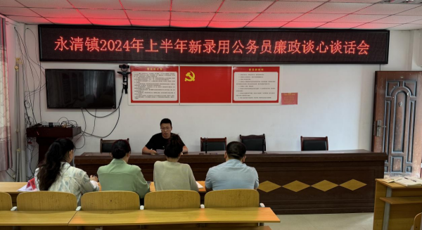 近日,永清镇召开2024年上半年新录用公务员廉政谈心谈话会,为新录用公务员念好“紧箍咒”、敲响“廉洁钟”。