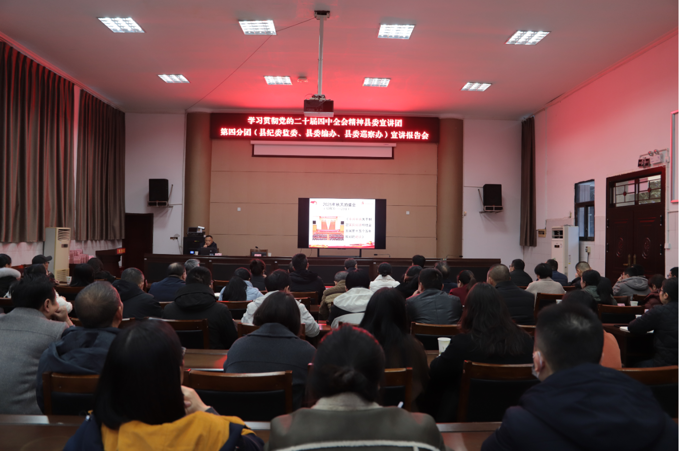 12月12日,学习贯彻党的二十届四中全会精神县委宣讲团报告会在县纪委监委举行,委领导班子成员,机关各室(部、中心)、县委编办和县委巡察办干部聆听了报告。